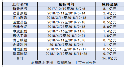 公开资料显示,一年来九鼎已经多次以资金需求为由,减持了十余家上市公司的股票。2019年1月2日晚间,新疆火炬公告九鼎集团拟清仓减持其股票,而江山欧派、金能科技、绝味食品、博士眼镜、诚意药业、皇庭国际、欧普康视、科林电气、中旗股份、惠达卫浴、新天然气和川恒股份等上市公司的股票更在早些时候已经经历了一轮大规模的减持。据蓝鲸财经的不完全统计,一年多的时间里,九鼎投资通过减持其手中的股票,已经套现超过26亿元。