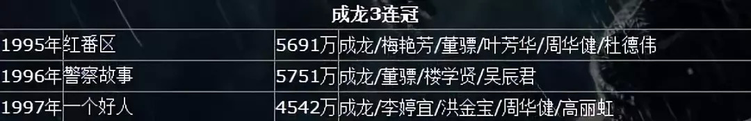 直到1995年-1997年,成龙又用三连冠再次证明了自己的实力。