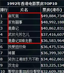 1992年,周星驰一共主演了7部电影,其中5部垄断了年度票房的前5名。