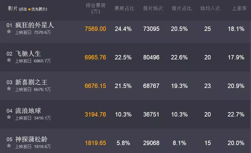 前三位,有国人渴望了太久的科幻IP(《疯狂的外星人》、《流浪地球》);