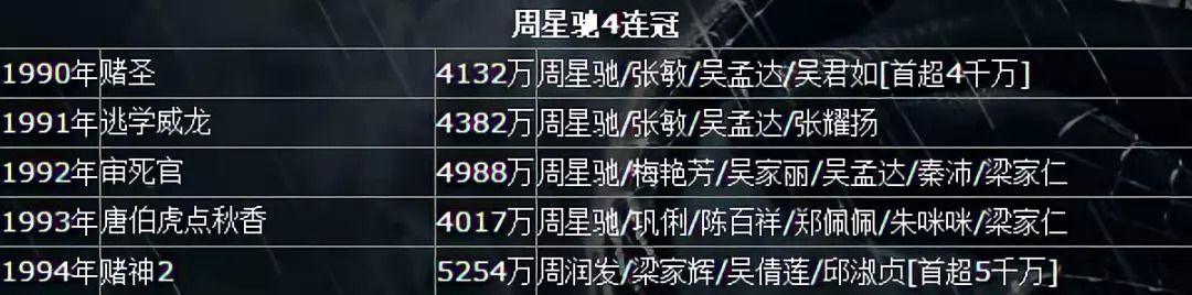 《赌圣》之后,周星驰正式确立无厘头表演风格,票房冠军一坐就是四年。