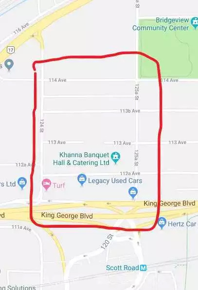 2019年1月30日,从下午四点到深夜,素里Scott Road Skytrain Station附近被大量的警车围绕着,最多时高达40辆。