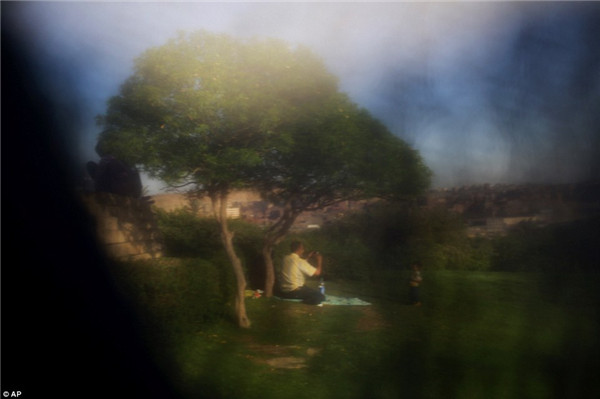 Hassan Ammar说:“这意味着这些女人现在看到的世界和过去是不同的。这些伊斯兰妇女佩戴的面纱遮住全脸,或是只露出了眼睛。吃饭的时候,她们得轻轻地掀起面纱。所以,在我旅行的时候,我决定像她们一样遮住自己的脸去拍摄一组照片,展现她们眼睛里的世界。”