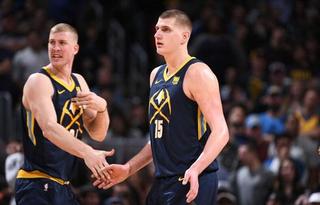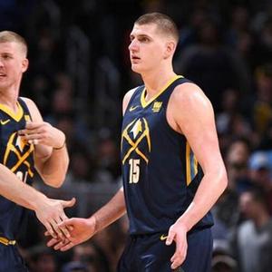掘金会在有些时候把约基奇摆在四号位,和普拉姆利搭档内线。