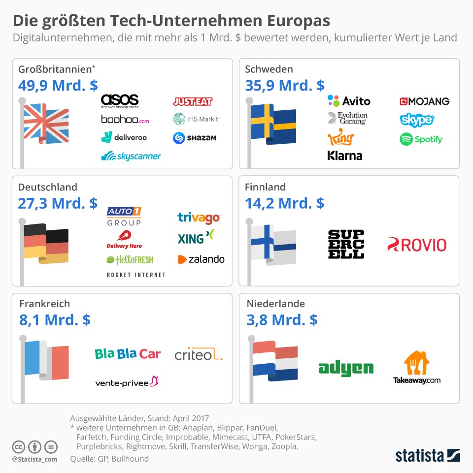 值得一提的是,尽管欧盟在数据保护层面强势地制定了全欧统一的GDPR,但各成员国在税收、电子支付等领域却依然各自为政。迟迟不愿意跨出德语区的Zalando工程师鲍曼(Eric Bowman)就说道:“相比硅谷公司,我们需要更多人力来做事,因为这里的语言、支付方式和缴税规定都各不相同。”也正因此,欧洲的科技公司往往止步于占领本国市场。一个在德国赫赫有名的业界第一的公司,隔壁的法国人却可能完全没听过。