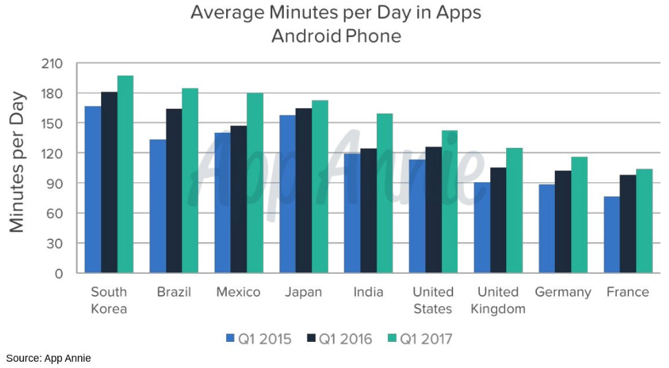 根据worldatlas近几年的数据,加拿大和美国的人均月上网时间为44和35小时,而这个数字在法国和德国仅为27和24小时;美国人均每天移动端上网时间为2小时37分钟,中国为3小时03分钟,法国人和德国人的数字就只有1小时32分钟和1小时37分钟;美国的人均年网购开支为1804美元,法国人和德国人在网购上的开销则只有1228美元和1064美元。