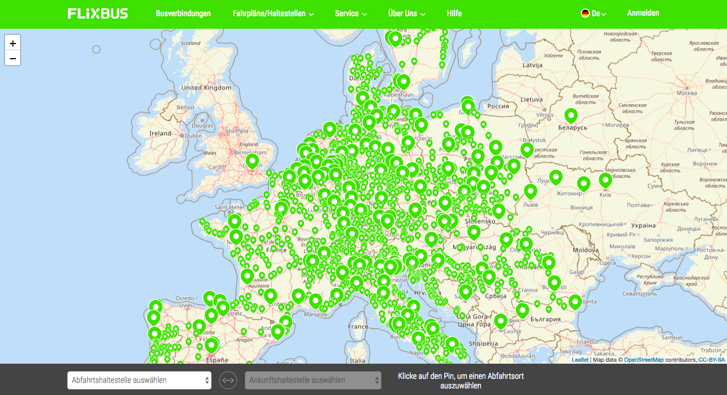 和其它保守的欧洲企业不同,Flixbus一建立就打响了补贴大战,凭借5欧元的超低票价迅速击败并收购了德国所有大巴公司。拿下本土市场后,其扩张速度更是令人吃惊,Flixbus以几乎一个月一个国家的效率在不到2年内称雄全欧洲市场,并在2018年夏天将触手伸向了加利福尼亚。