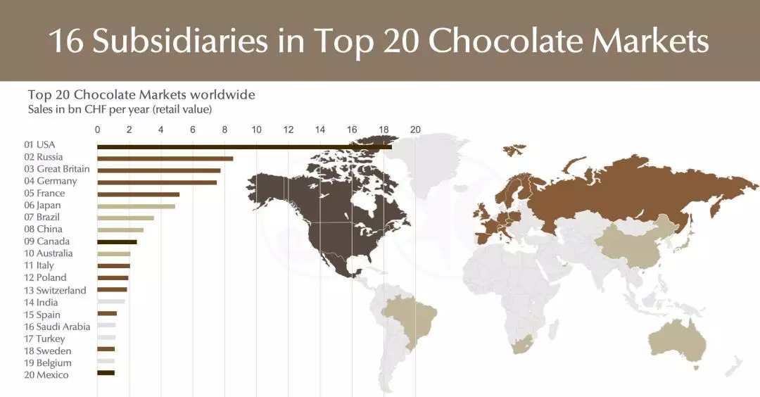 Lindt & Sprüngli公司更引述数据指出,按零售额计算在当期,中国位列全球第8大市场,在亚洲仅次于日本市场,巧克力零售额在29亿瑞朗左右的规模(折合人民币约195亿元)。