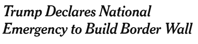 【特朗普正式宣告为边境墙进入国家紧急状态】特朗普在白宫正式宣布将启动国家紧急状态,以获取国会未批准用来建造美墨边境墙的款项,在周五当日特朗普签名生效后,他将能调配使用36亿美元的款项来建造边境墙。白宫官员还称,特朗普还能利用总统的预算支配权从反毒品贸易基金中抽取25亿美元,以及从财政部依法没收的民事资产中抽调6亿美元。特朗普在演讲中称“毒品和犯罪分子正在入侵我国”,还称自己政府部门的调查数据是不可信的,出现多处自相矛盾的表述。