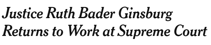 【金斯伯格大法官病假两月后复职】美国唯一一位在任女性大法官、现年85岁的鲁斯·金斯伯格在去年12月因癌症进行手术后,周五在最高法院首次露面,参加一次大法官的闭门会议。此次会议商讨最高法院将把哪些新案件增加到案卷讨论中,包括联邦反歧视法案是否保护同性恋者,以及特朗普政府能否在人口普查问卷中加入国籍选项。此前从未缺席辩论的金斯伯格在1月缺席了两周辩论,但将在周二重执法槌。