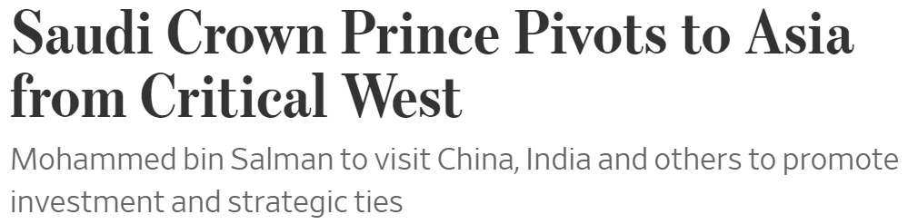 【沙特王储萨勒曼将开启亚洲之行】面临卡舒吉事件后西方一致的批判声音,沙特王储萨勒曼把招商引资的目光转向了东方:根据沙特政府顾问消息,他即将对包括中国和印度在内的亚洲五国进行访问。这与他在2018年4月访美时呈现的姿态全然不同;除了卡舒吉事件之外,美国国会还投票终止了对沙特在也门作战的援助,这也让沙美关系更为僵持。