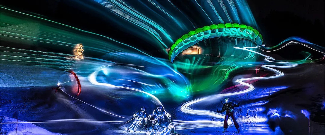 夜滑的都见过,在雪场的夜里滑翔的可不多见2月19日,element3 Air&Ski Show 2019也来啦,滑雪者、滑翔伞和滑翔机在夜晚的基茨比厄尔同场PK~