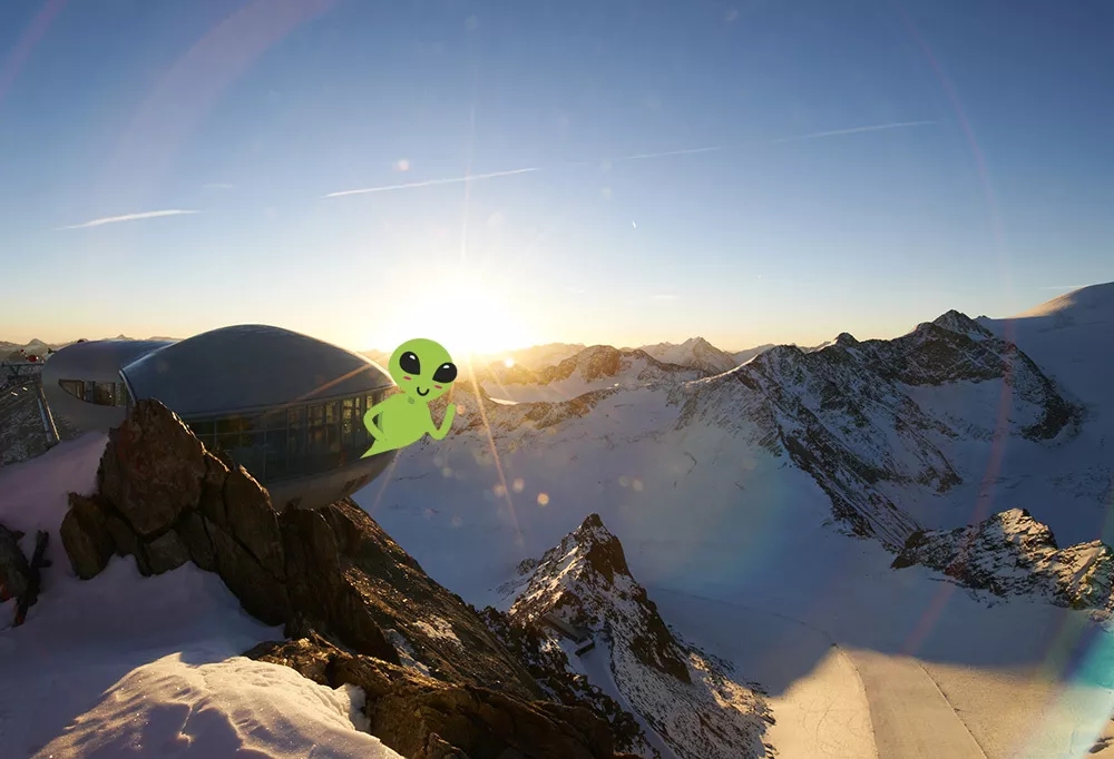 当我们想到雪,浪漫这个词会先浮现在脑海中,而皮兹山谷(Pitztal)就是“雪山浪漫”的代名词!在海拔3440米的山顶,坐落着一座“Café 3440”咖啡馆,它悬浮的空中露台,像不像是撞进去的UFO!酷炫与美景之外,这还是奥地利海拔最高的婚姻登记处,附近还有一座 “白光礼拜堂“ ,在五十多座连绵雪山组成的全景画卷中,许下一生的誓言,就是阿尔卑斯的极致浪漫~
