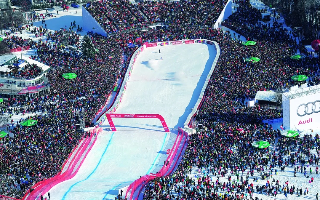 接着从1966年第一届FIS高山滑雪世界杯开始,各种滑雪界的大赛都要来这里“争宠”!还有一条不得不提的传奇雪道——Streif,陡至85°的它吸引着众多雪圈大神前来挑战。这里也刚刚经历过雪圈8万人的狂欢!他们来膜拜的目标就是哈南卡姆大赛(Hahnenkamm Race)。这个比滑雪世界杯历史还久的比赛,加上令人肾上腺素狂飙的传奇雪道,每年的都是滑雪爱好者膜拜的胜地其中还有奥地利总理和施瓦辛格这样的大佬!
