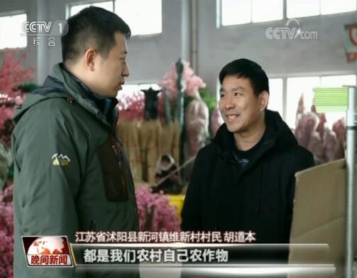江苏省沭阳县新河镇维新村村民 胡道本:你像柳球、藤球、向日葵,玉米,包括刚才的小麦,都是我们农村自己农作物,经过我们加工做成产品卖出去。