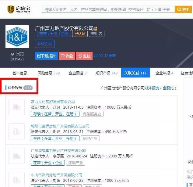 其实,我们仔细研究富力地产的发展就会发现,其实富力地产作为“华南五虎”之前的老大,本身发展的潜力和后劲都不差,根据启信宝的数据显示,成立于1994年8月31日的富力地产,是中国华南地区重要的房地产市场参与者,旗下有117家下属企业,可谓是实力雄厚。但是问题在于: