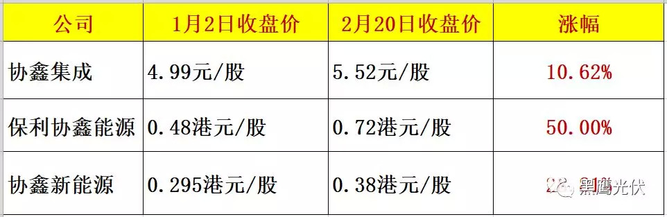 保利协鑫能源2019年1月2日收盘价为0.48港元/股,2月20日收盘价达到0.72港元/股,同比涨幅达到50.00%,同阶段内,这样的涨幅在中国77家光伏上市企业中名列第一。
