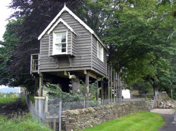 道格特身高6英尺5英寸,开着一辆小小的斯玛特汽车。2008年,他在加利福尼亚北部建了一间屋子。房子一边靠着一座人迹罕至的山,一边掩映在山旁一株60英尺高的树的枝桠里,一座吊桥连起了两边。他当时这么说:“我从小就梦想住在一栋树屋里。这个梦想其实从来没有走远过。”(别想了,从路上看过去什么都看不到。)