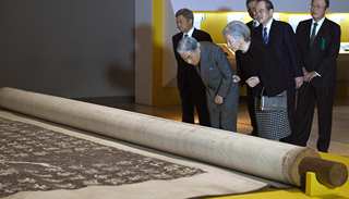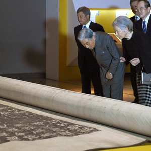 2月20日(周三)晚间,日本明仁天皇夫妇来到位于东京上野的东京国立博物馆,参观了正在举办的特别展览“颜真卿:超越王羲之的名笔”。