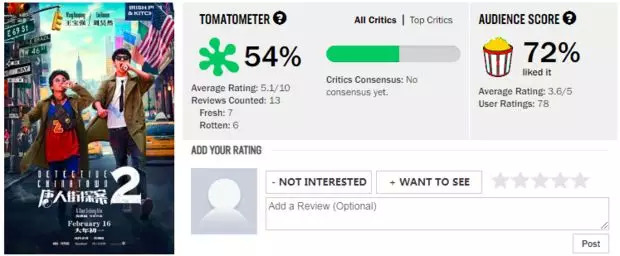 《美人鱼》、《唐人街探案2》等贺岁片在北美上映的评级则为R级,《美人鱼》尽管有索尼协助发行,但上映规模最大那周只有107个馆,由华纳负责北美发行的《唐人街探案2》,北美上映期间规模最大的一周有115个馆同时放映该片。