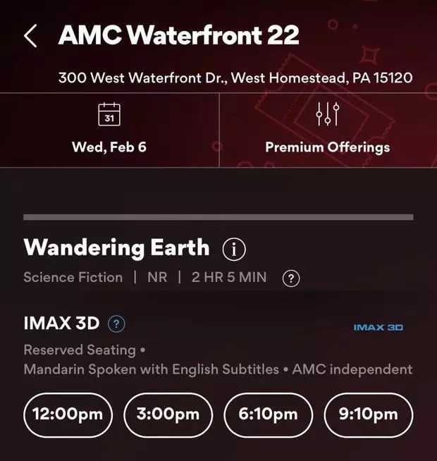 《流浪地球》北美市场的票房好成绩也离不开IMAX的助攻。以美国最大院线之一AMC为例:在最早上映《流浪地球》的纽约AMC Empire 25影院,一张成人观众的2D电影票价格为16.49美元,一张成人观众的IMAX 3D电影票价格则是26.49美元,票价差别的加成显而易见。
