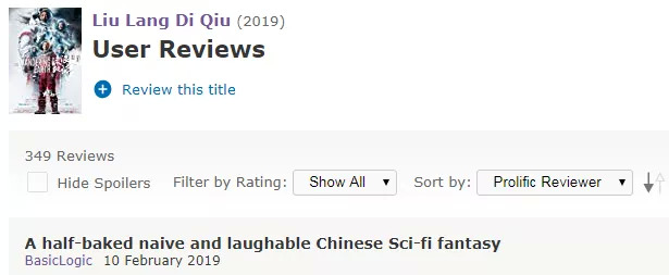 那些常年混迹IMDb的海外资深影迷们(prolific reviewer)对《流浪地球》的评价则褒贬不一,评分从1-10跨度极大,而他们的影评与中国影迷的观点并无太大差距。
