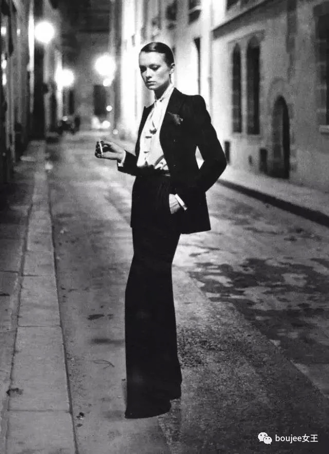 1966年,小卡尔三岁的伊夫圣罗兰设计了世界上第一套女性西装——YSL吸烟装,大胆的中性风设计一经问世,就受到了当时女性们的欢迎。从此西装不再是男人的专属,也是女人的衣橱必备。