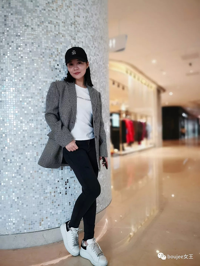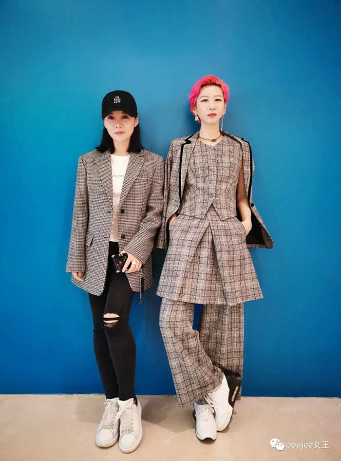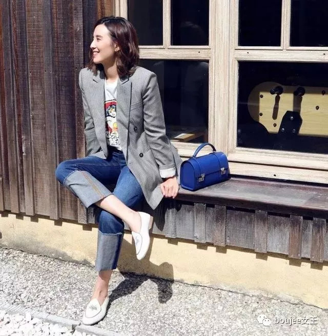 大YO的穿搭参考,Oversize格仔西装,搭配随性洒脱的牛仔裤,Girls' Power彻底出现。