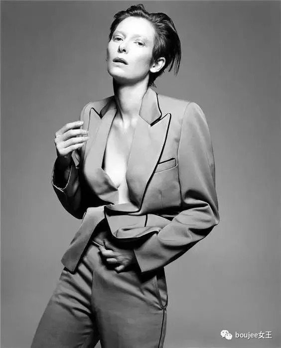 要怎样才能把西装穿的性感诱人呢?来看Tilda Swinton,裸穿西装,性感入骨——这,就叫做强硬性感,非常的不小鸟依人,但非常的性趣盎然。