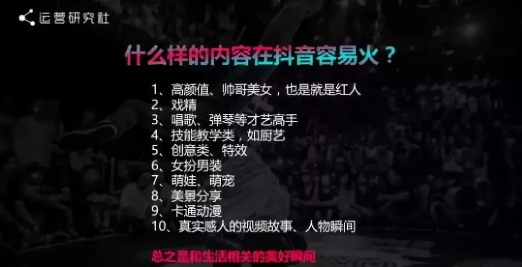 而抖音则利用不仅有好听的背景音乐,提升了观看体验,上下直接翻页的简便功能,单个视频的全屏幕展示,没有进度条,更加没有那些低俗视频,绝大部分视频都传播正能量,展示颜值、身材、歌声、才艺或者专业知识等美好的生活内容,摒除了靠恶搞、搞怪、低俗吸引研究的方式,令人赏心悦目,有所启发,让人觉得这个世界比看到的更美好。