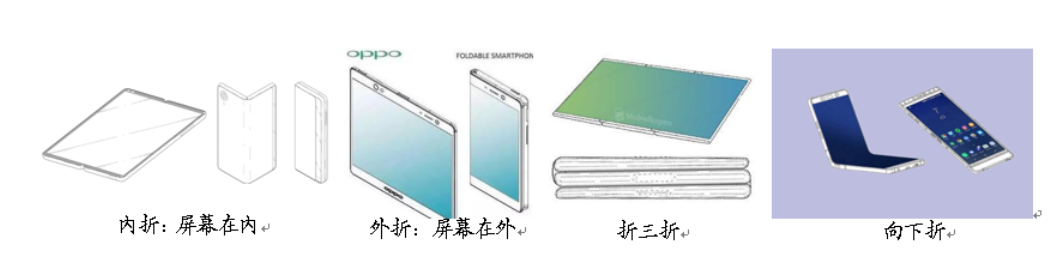 从形态上看,可折叠手机目前出现的折叠方式分为内折、外折、折三折、向下折这四种。比如华为Mate X采用的是外折,Galaxy Fold则采用内折的方式。