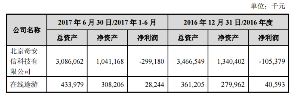 根据招股书,截至2017年6月底,奇安信总资产30.9亿,净资产10.4亿,2017年上半年亏损2.99亿元。