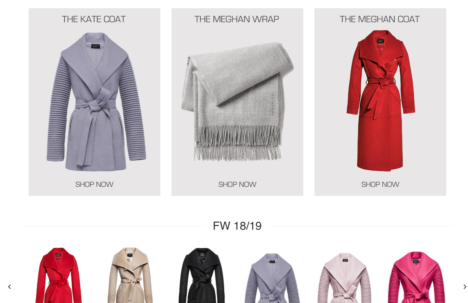 现在Sentaler的官网还特意把凯特和梅根穿过的款式放在了首页,被标注为“凯特大衣”和“梅根大衣”。