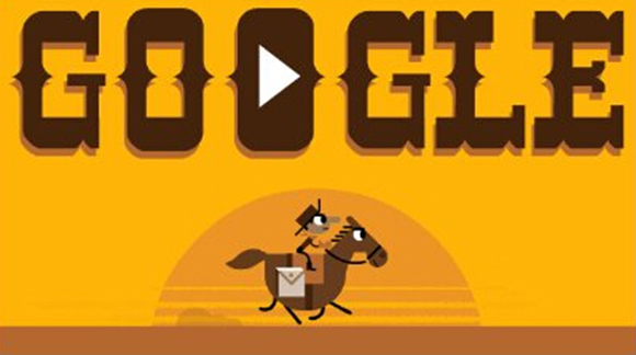 除了精心的设计,在涂鸦呈现上,Google也越来越多地采用与网友互动的形式。月14日,为了驿马快信(Pony Express)的第155个周年纪念日,谷歌涂鸦Logo被精心设计成一款小游戏,用户可以使用键盘上指定按键指挥小马运送邮件。如果顺利通过前两关,你就会迎来目的地,小镇居民会为你欢呼。在那里你会看到自己的最终得分,并可能获得一个机会将游戏过程置顶播放。