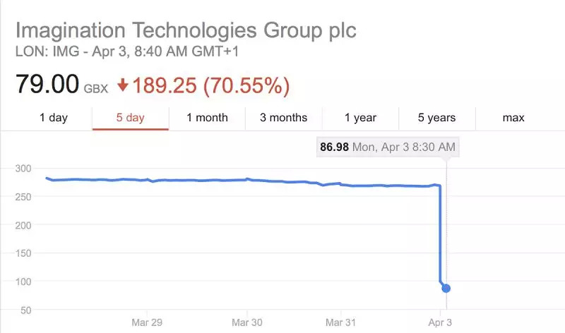 苹果无疑是最无情的,两年前它们宣布自主研发图形处理器,首席GPU供应商Imagination股价立刻遭遇断崖式下跌并一蹶不振。很快,之后的几代iPhone产品中就再没有Imagination的身影,而这家曾叱咤风云的半导体大厂最近已沦落到被收购的地步。