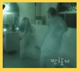 进鬼屋前一定要先观察敌情,确认自己的安全...▼