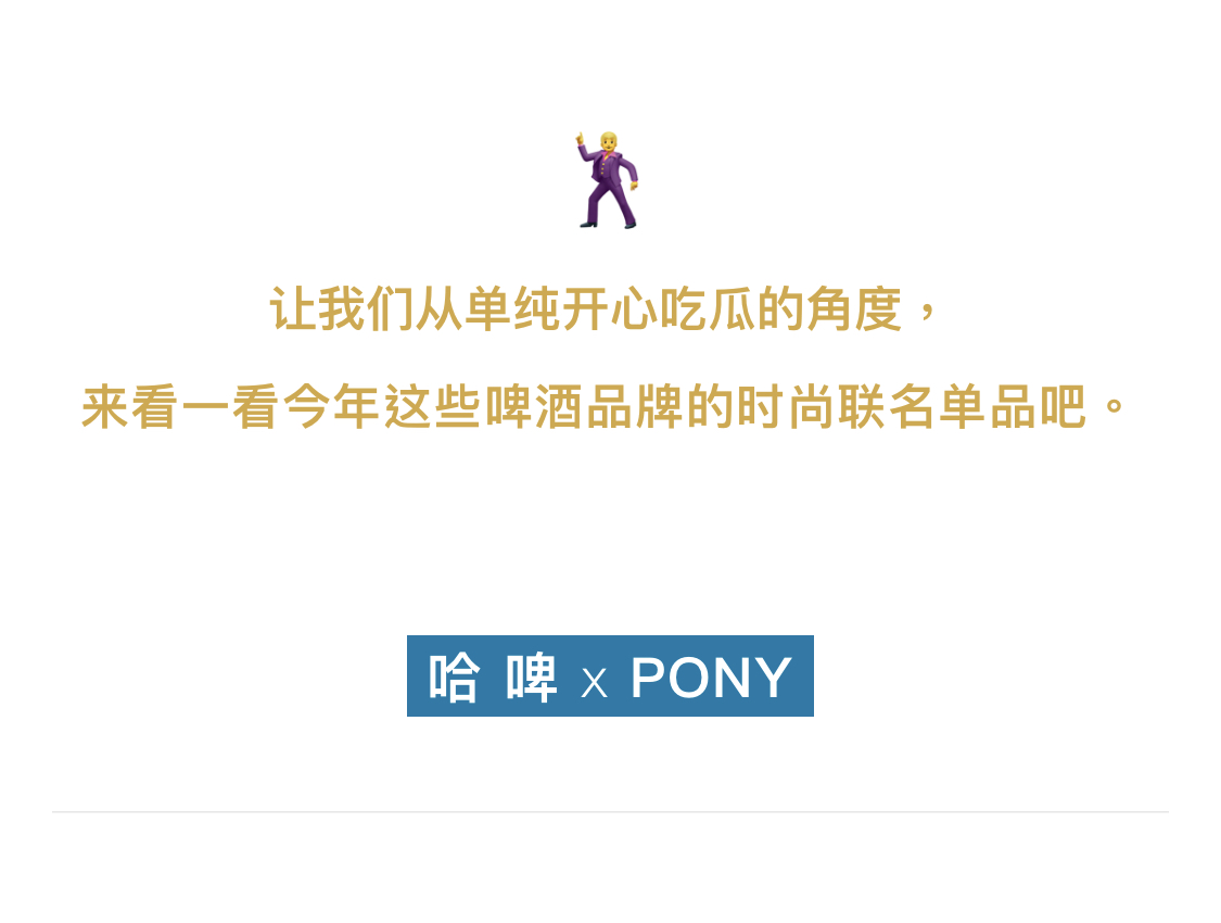 另外,对比老干妈这样的食品品牌,啤酒可能天然有一种街头感。穿潮牌喝啤酒感觉很自然,换个其他的品牌则未必如此顺理成章。