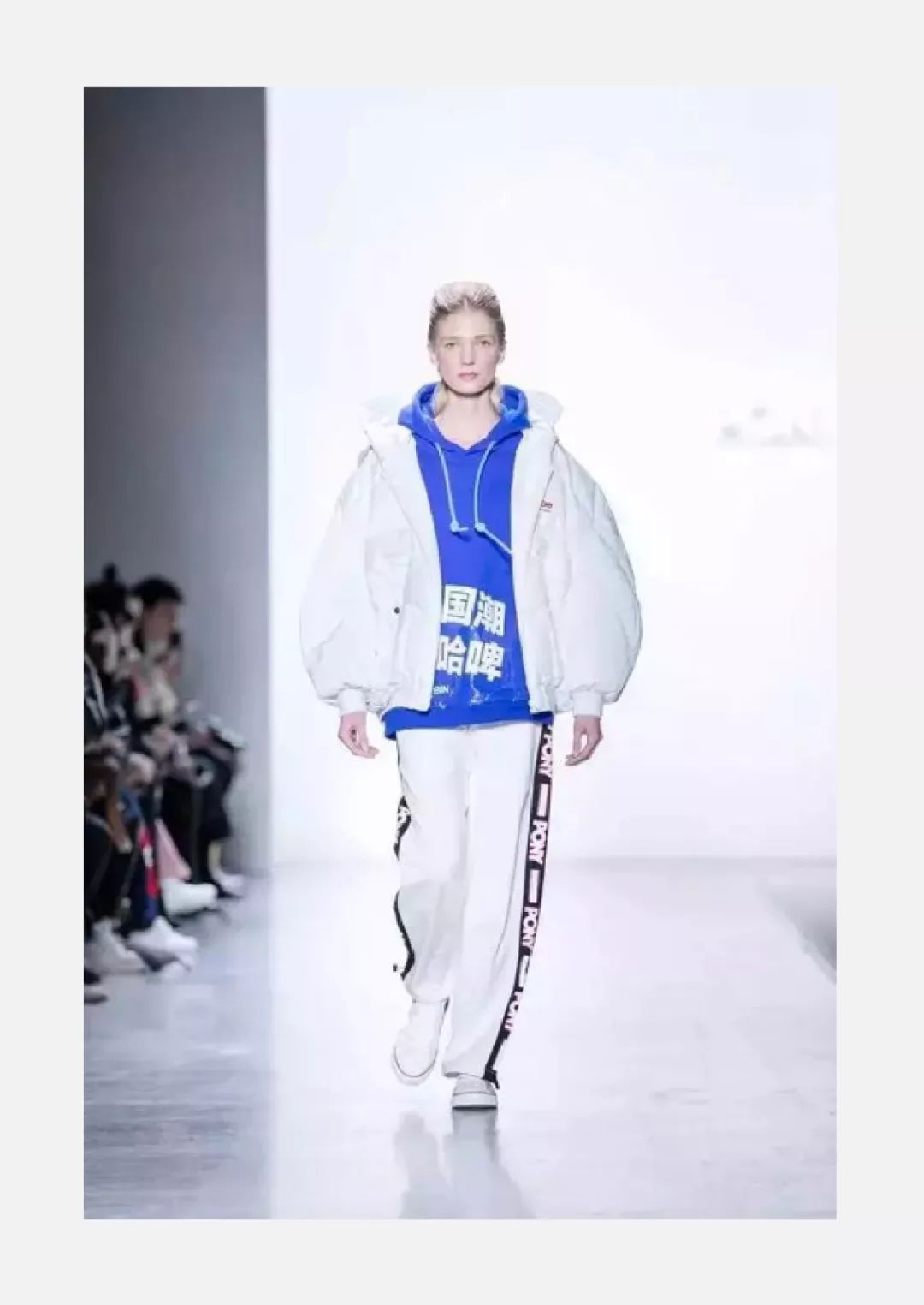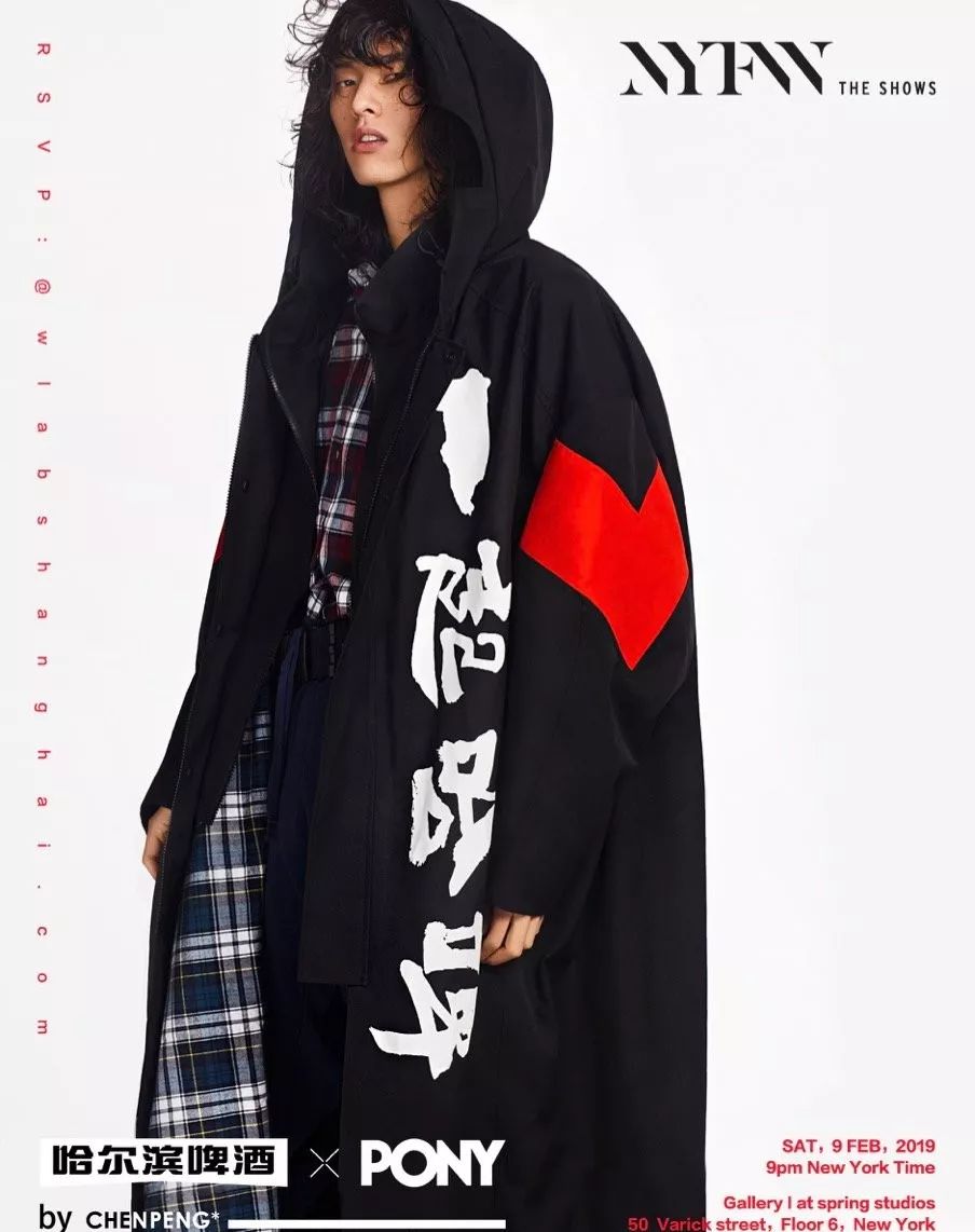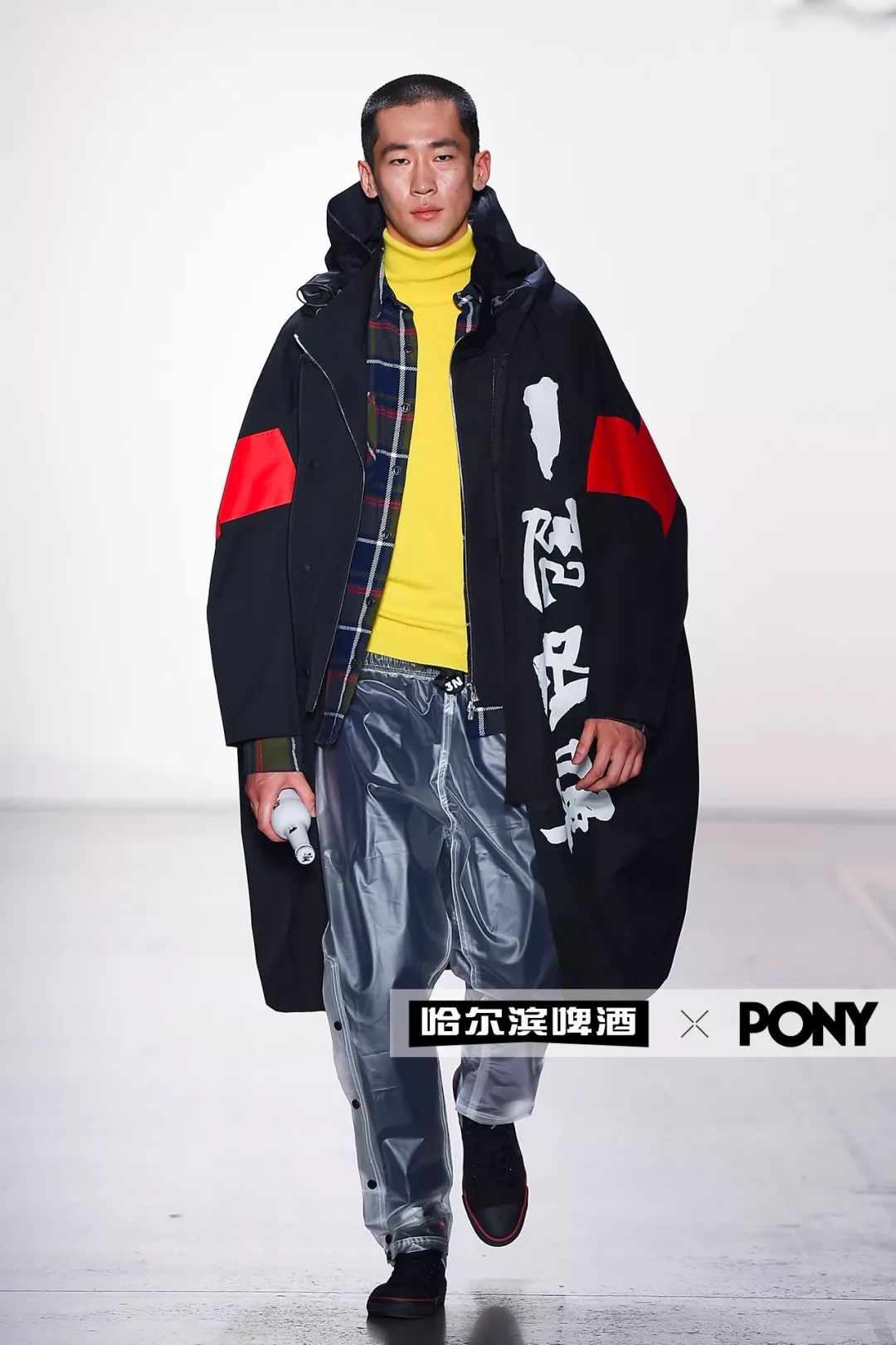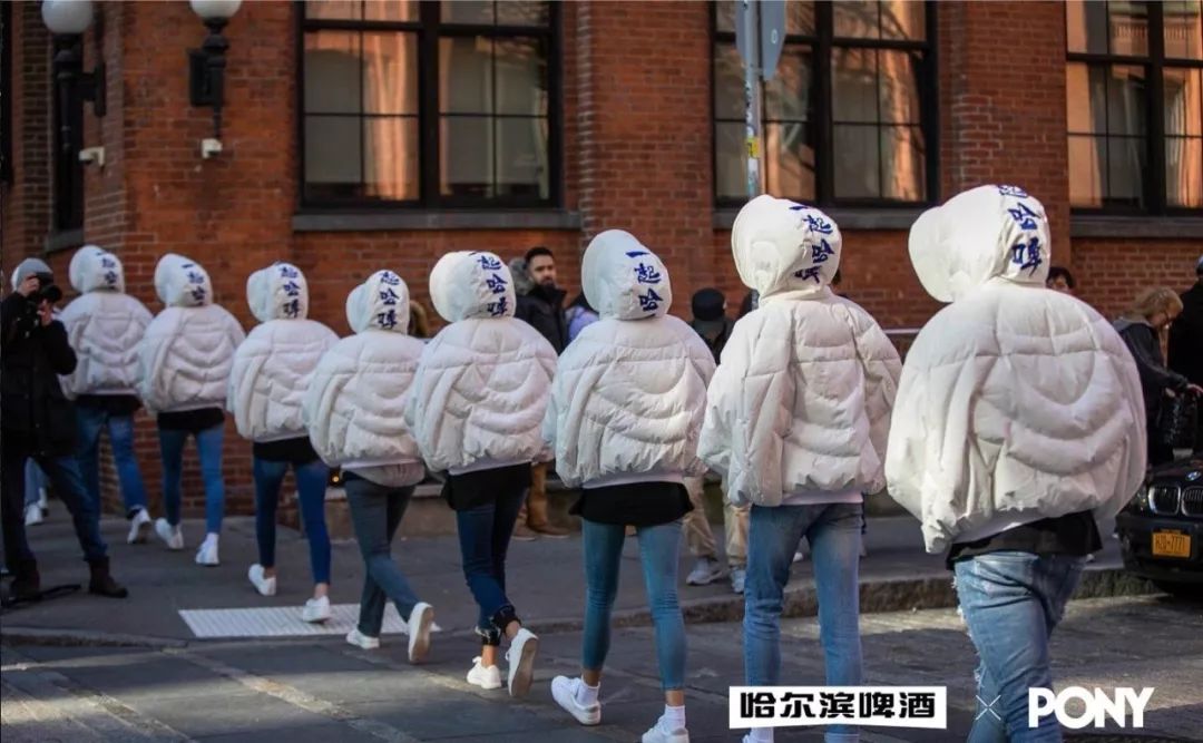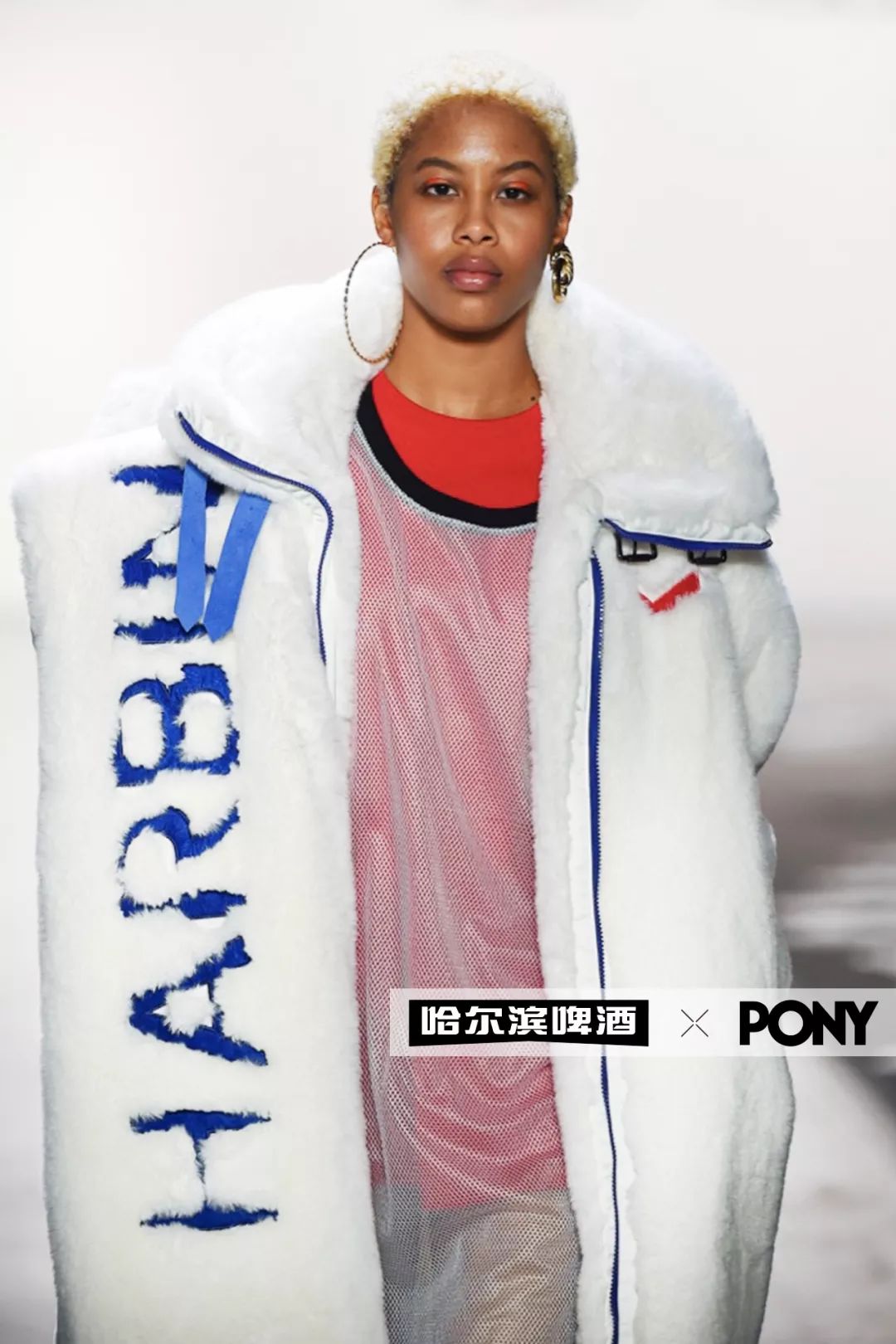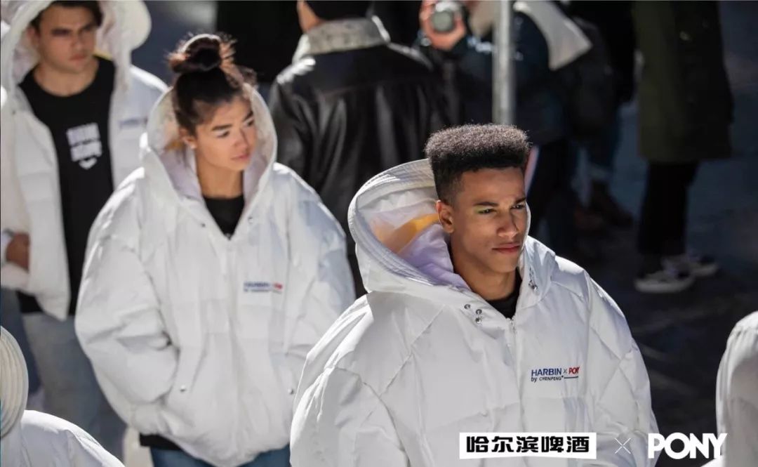 2 月 9 日,哈尔滨啤酒和运动品牌 PONY 在纽约时装周上办了场秀,其中包括 5 款中国设计师陈鹏操刀的三方联名外套。