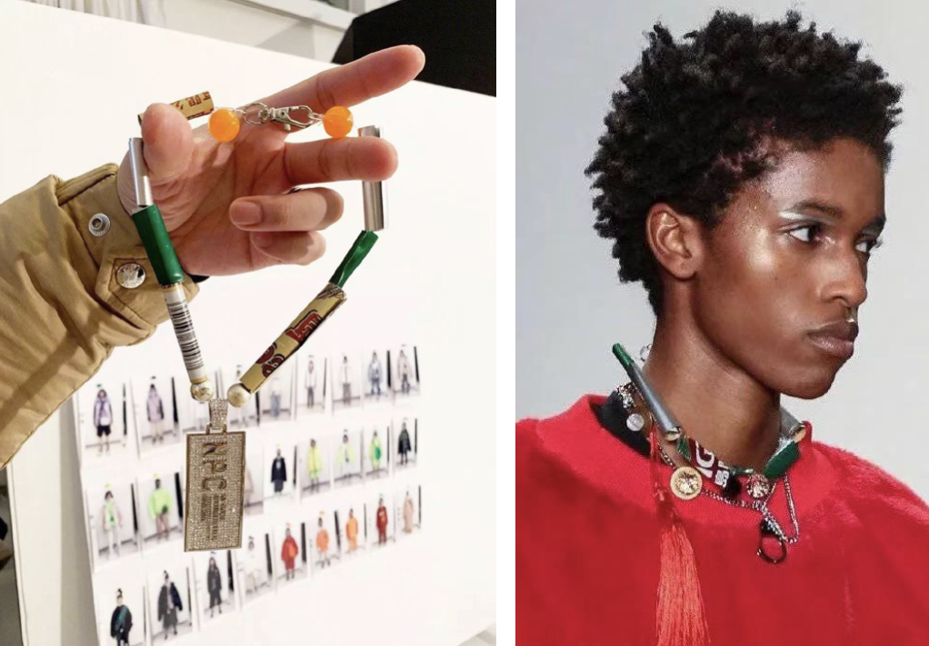 顺便一提,按照NPC创始人李晨的说法,这场秀除了这两件衣服,全场的项链也都是青岛啤酒主题,具体来说就是所有的项链都是用废弃的青岛啤酒瓶制作的,也挺工业风呢。