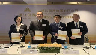 2月28日,滨江服务集团有限公司在香港举行上市发布会。董事会主席、总裁兼执行董事朱立东,非执行董事蔡鑫,董事会秘书、联席公司秘书兼执行董事钟若琴及财务负责人周栋出席现场。