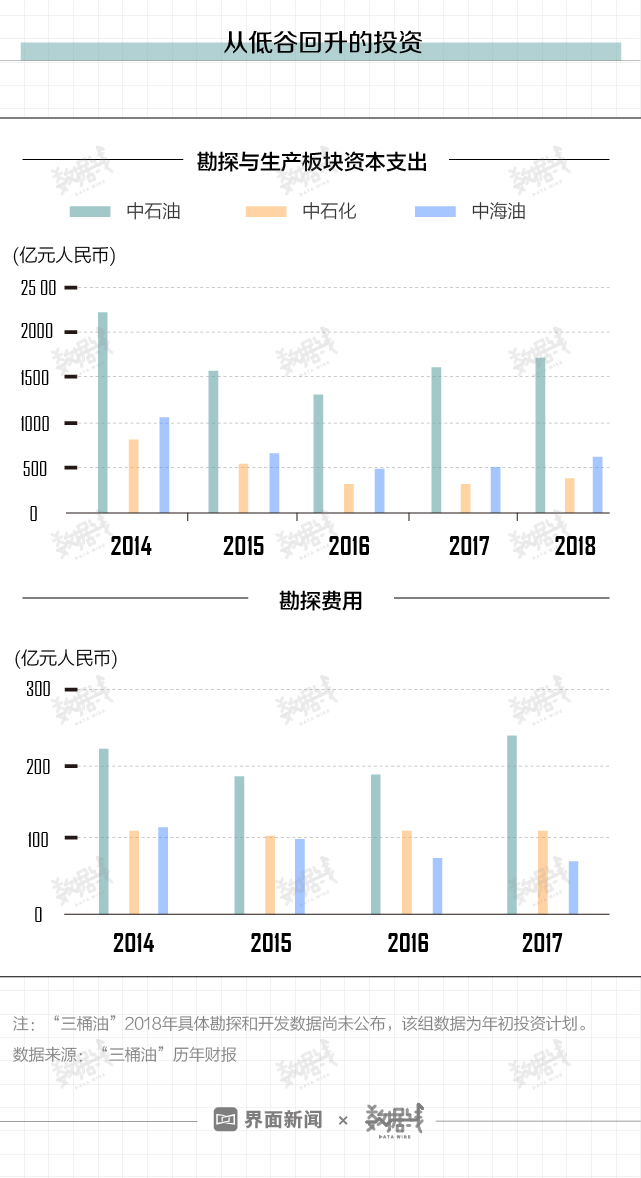 “三桶油”对勘探的投入高低,基本与近年来的油价走势相吻合。