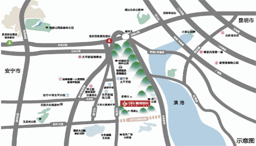 位于安宁太平新城的核心位置,处西山南麓延长线的“生态宜居圈”