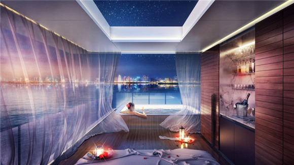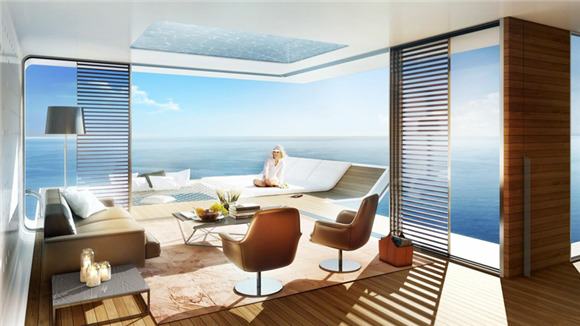 其最新的项目,“漂浮的海马“(Floating Seahorse)更是将奢华进行到底:它是一个拥有水下房间的海上漂浮别墅。