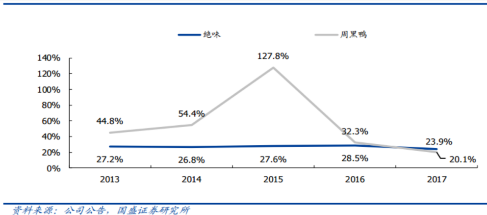 (图2)绝味与周黑鸭ROE的比较