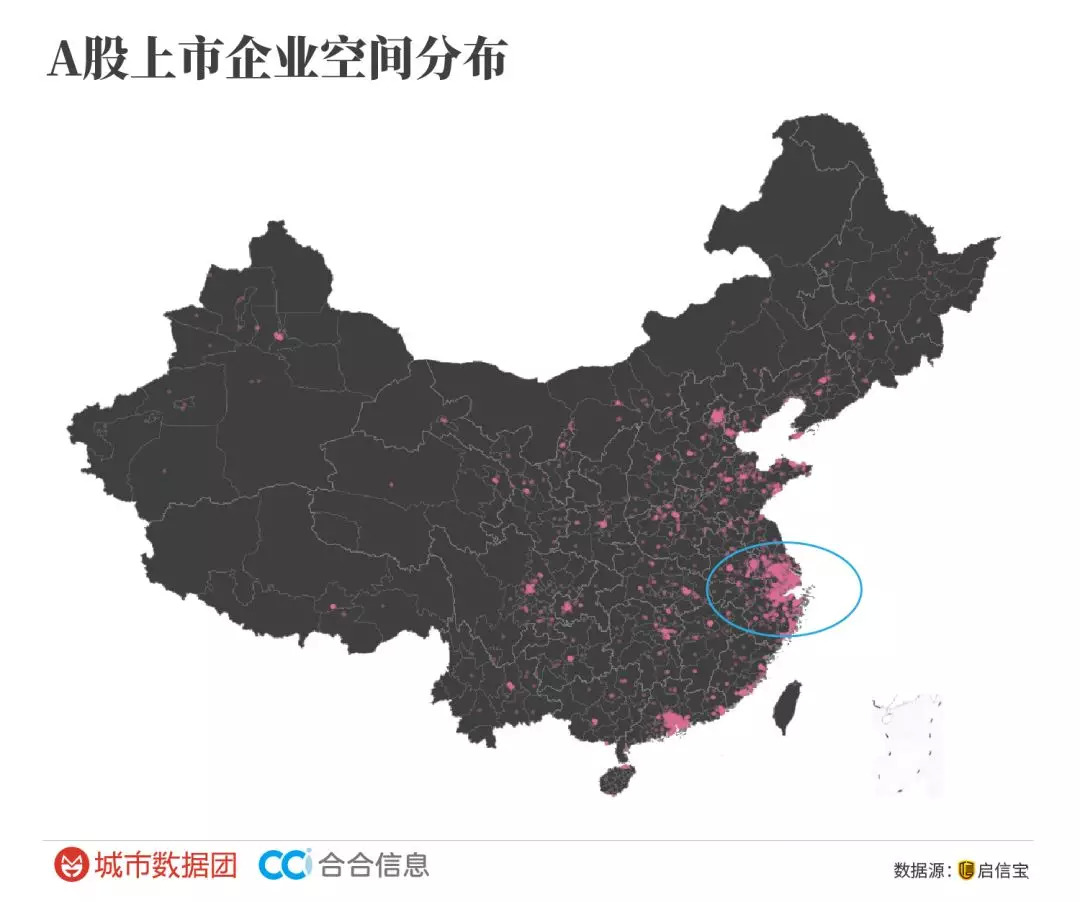 我们通常说上市企业是各行业中的典型代表,一个城市或地区的上市公司发展状况,不仅集中体现了该行业的发展现况,也能够折射出其所在地区的区域竞争力水平。从A股上市企业空间分布来看,与中国目前的区域经济发展现状完全吻合。