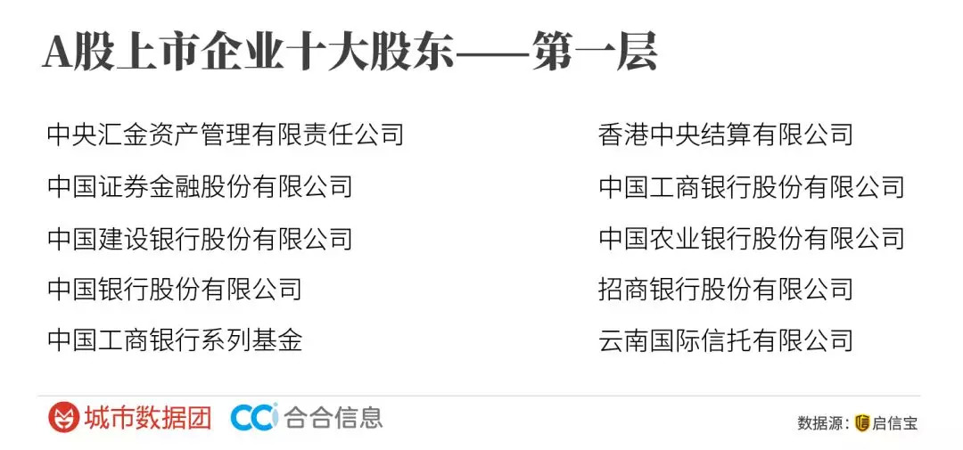 城市数据团和合合信息的数据分析了A股上市的3500余家上市公司相互间的投资关系,并制作了拓扑关系图,发现几乎所有的资本节点型上市公司都在北京。如果对所有A股上市公司的直接股东进行,得到了最高频出现的“中国A股好股东TOP10”,大多数也在北京。
