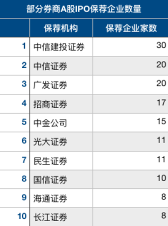从证监会官网最新公布的239家IPO正常待审企业名单来看,中信建投证券保荐了30家企业,位列第一,中信证券和广发证券各自保荐了20家企业并列第二。