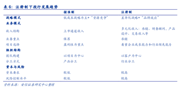 安信证券非银行业研究员张经纬也表示,科创板与注册制落地后,投行的价值发现功能将得到更大发展。投行将不再局限于为企业提供上市服务, 而会根据企业实际状况和市场环境为企业在战略、文化、内控、业务、资本运作等各个方面提供全方位服务,将由财务顾问等个别角色转变为金融综合服务商。