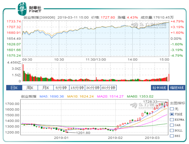 3月11日(周一),新的一周交易日开始,A股市场无惧周末消息面经济数据方面的潜在利空因素,两市再度呈现普涨的行情,创业板强势领涨。上周五(8日)市场在所谓的研报事件利空消息影响下出现大幅杀跌,给前期连续大涨的市场泼了一盆凉水,金融板块首当其中出现重挫,引发年后市场上涨行以来的第一次大震荡。