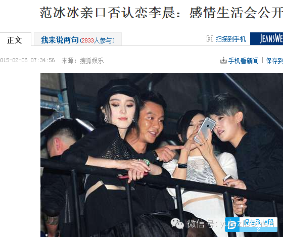 ①首先在节奏上,自己的恋情自己做主,曝光也要带着广告来。而首发地点,先选择的是“微站”(微信的一个子APP)。毫无疑问,这次在微站公开恋情是提前与腾讯策划好的。而据小娱内部了解,除了腾讯的强势舆论地位外,或许也和范冰冰接下来即将要拍的古装剧,正在谋划卖网络视频版权有关系。
